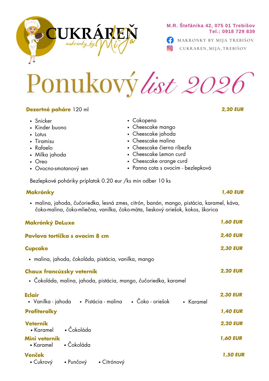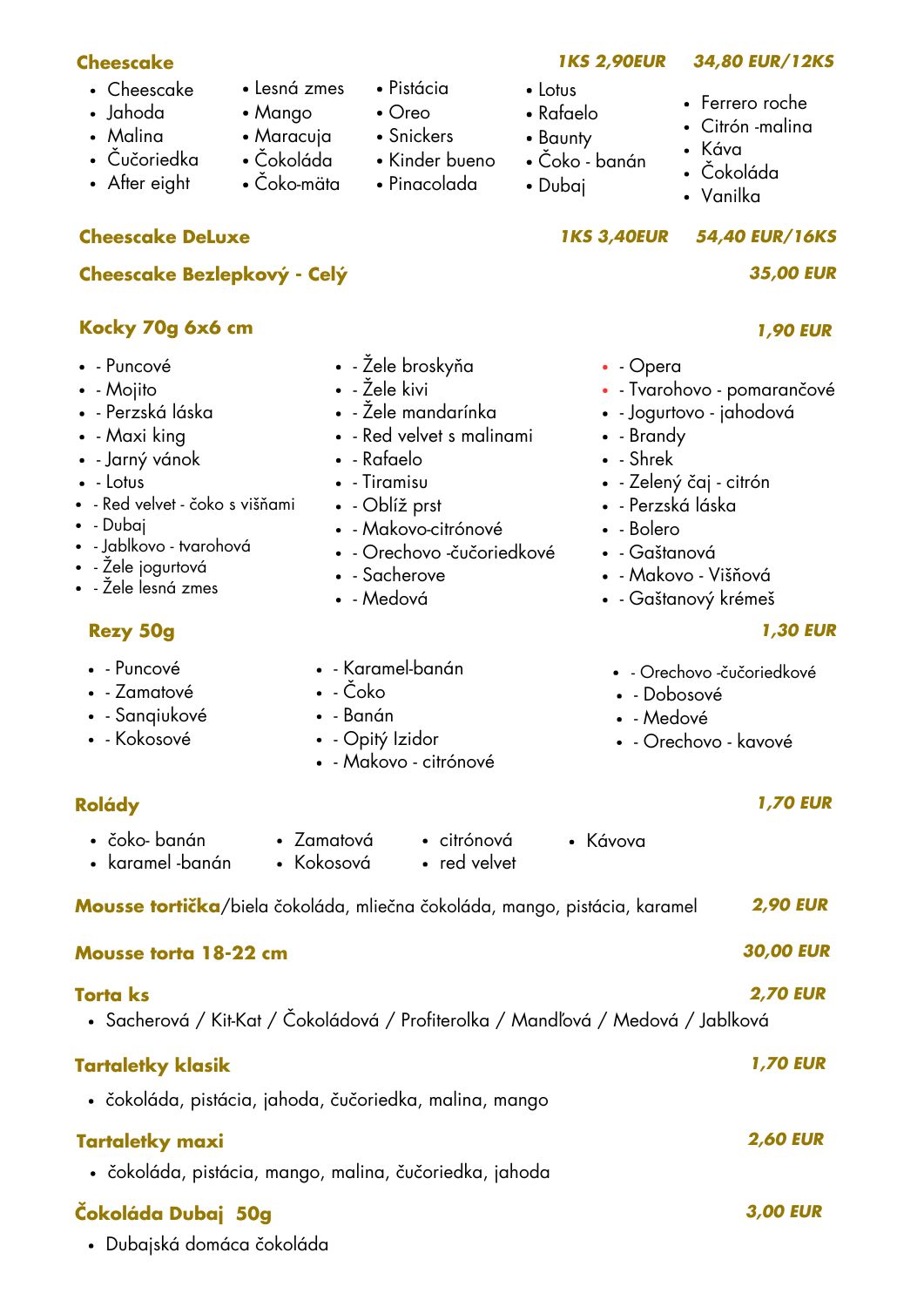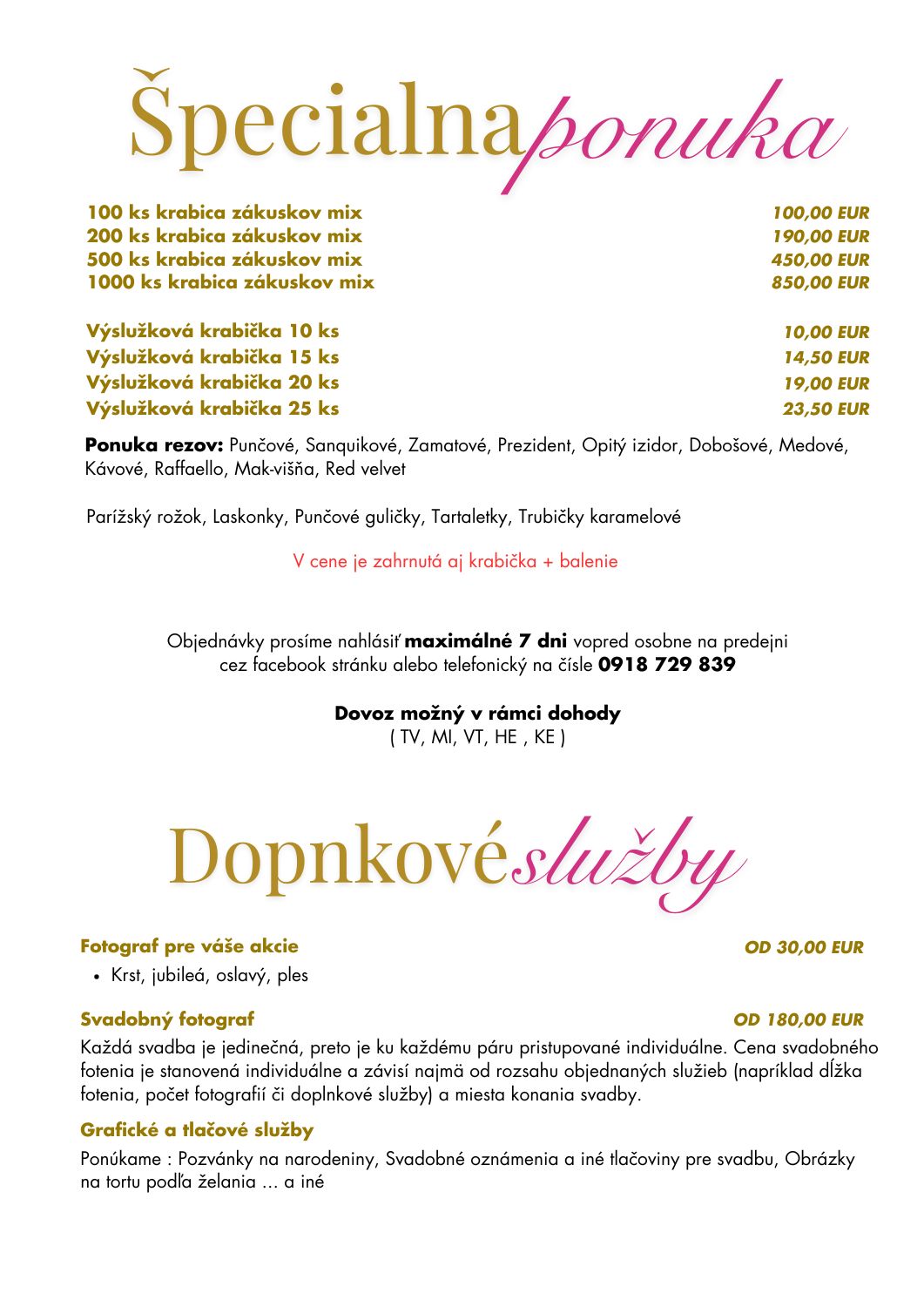 Pripravujeme klasické aj moderné zákusky, krájané koláče a cheesecake na oslavy, svadby aj firemné podujatia.